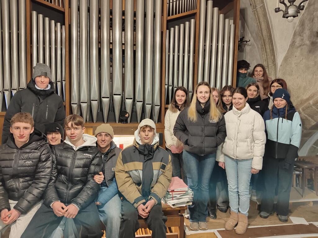 Am 8. Jänner hat sich unsere 7AB mutig in die winterliche Kälte gewagt, um in der Pfarrkirche St. Stephan in Gmünd die Orgel, die "Königin der Instrumente", näher kennenzulernen. Organistin Grete Schwingenschlögel führte uns mit viel Begeisterung in die Welt dieses faszinierenden Instruments ein und einige durften sogar selbst in die Tasten greifen!