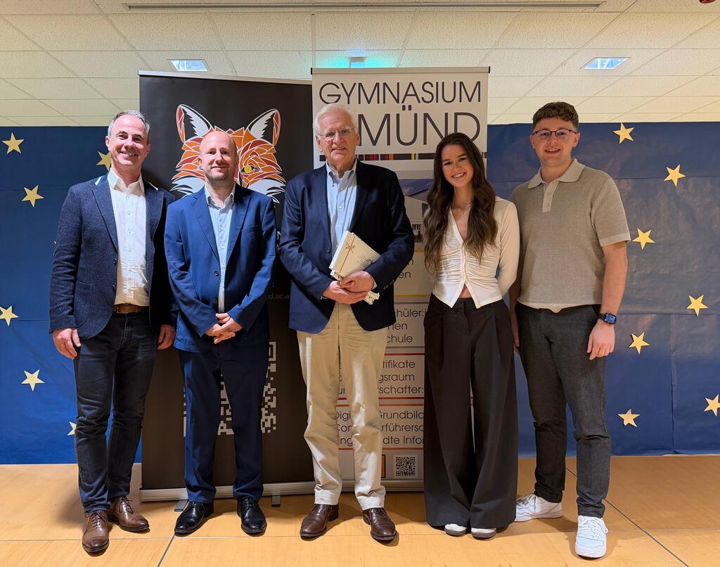 Dem äußerst interessanten Vortrag, der vom Absolvent:innenverein des Gymnasiums gemeinsam mit dem Elternverein organisiert wurde, schloss sich eine kleine After-Show-Party an. Dass auch Dr. Benedikt Raab, wissenschaftlicher Mitarbeiter von Univ.-Prof. Prinz in Stanford, für diesen Abend an seine ehemalige Schule zurückkehrte, erfreute die Schulleitung samt Organisatoren sehr.