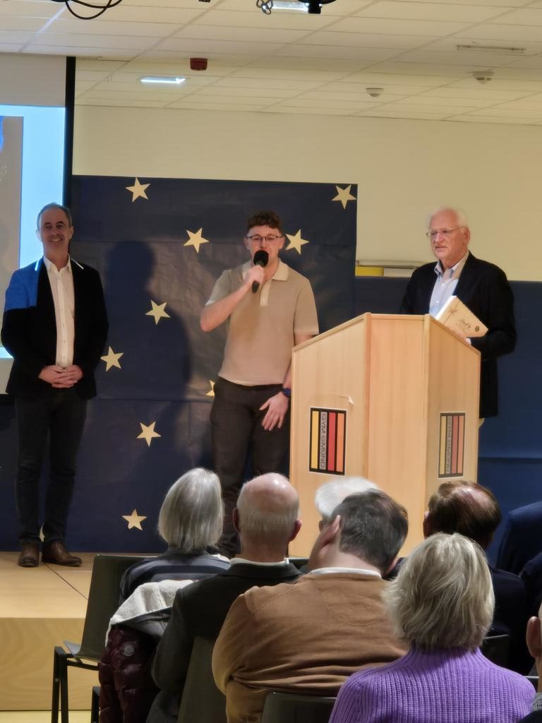 Der renommierte Stanford-Professor und Absolvent des Gymnasiums Gmünd Dr. Fritz Prinz begeisterte am Freitag, den 19. 12. 2025, rund 150 Gäste mit spannenden Einblicken in seine neuesten Forschungsergebnisse der Quantenphysik. Der gebürtige Gmünder, der noch immer sehr gerne und oft in seine Heimatstadt zurückkommt, mit der ihn zahlreiche Freundschaften verbinden, arbeitet heute am Quantum Mechanical Engeneering Laboratory an einer Quantencomputertechnologie, die fähig sein wird, die zurzeit noch extrem energie- und kostenaufwändigen AI-Anfragen zukunftstauglich für die mannigfaltigen Einsatzgebiete zu machen, die sich heute schon in den Bereichen Mobilität, Energielandschaft, Fabrikation und besonders auch im Gesundheitsbereich abzeichnen.