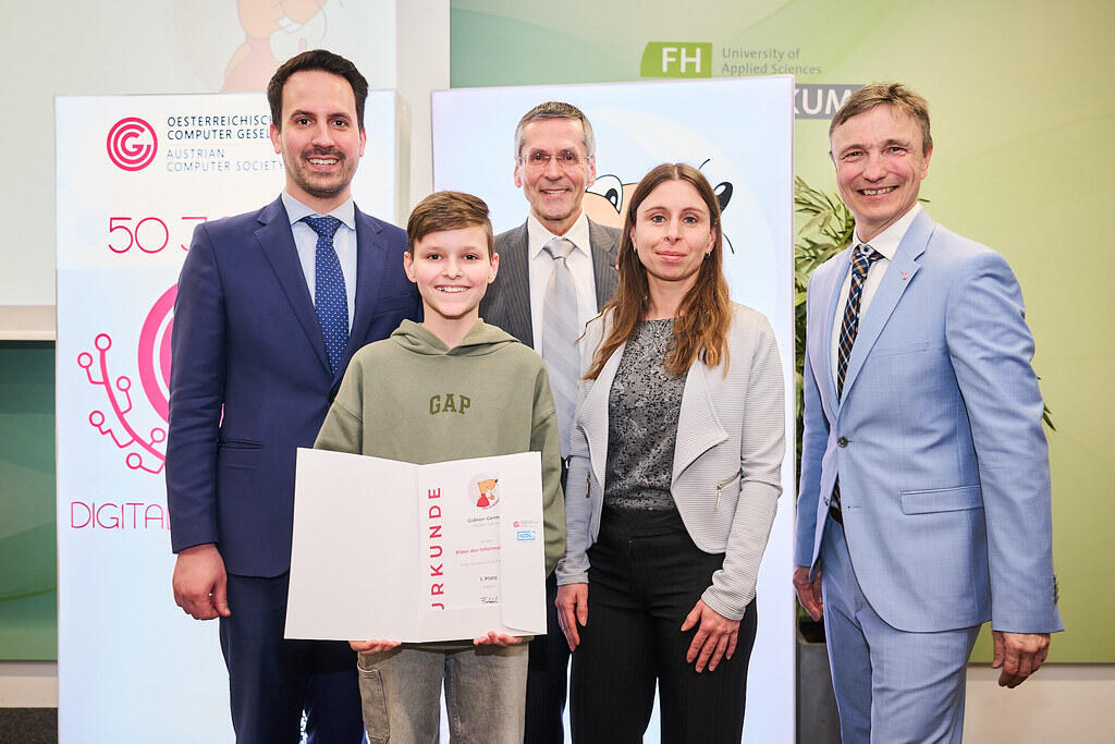 Gideon gehörte zu dieser kleinen Spitzengruppe und wurde deshalb nach Wien eingeladen. Am FH Technikum Wien nahm er am 11.3.2026 seine Auszeichnung persönlich entgegen. Überreicht wurde sie von der Österreichischen Computer Gesellschaft gemeinsam mit Bildungsminister Christoph Wiederkehr.